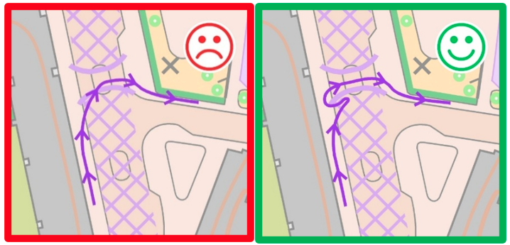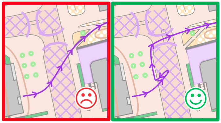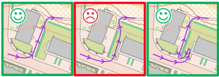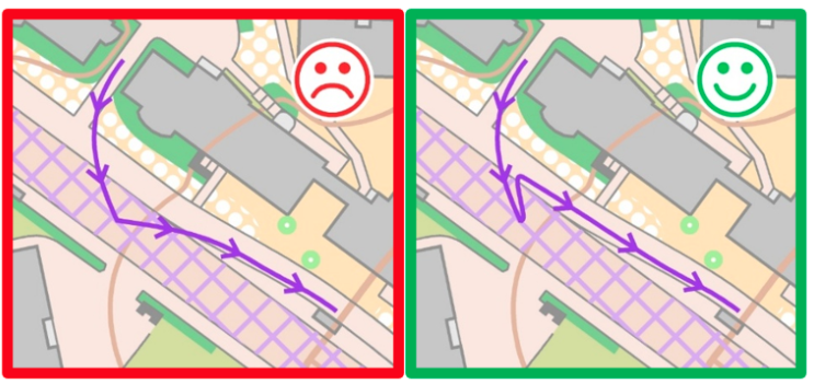I den första bilden visas den avsedda och godkända löpvägen.