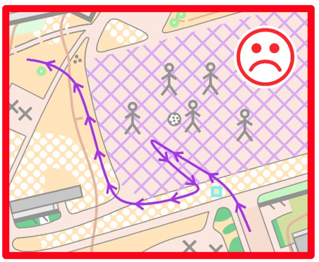 G. Störande av annan verksamhet. Att t.ex. orientera över en bollplan där match pågår eller beträda mark som ägs av markägare som inte tillåter orientering anses skada sportens anseende (4).